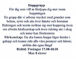 Det finns plats i följande ridgrupp våren 2025!